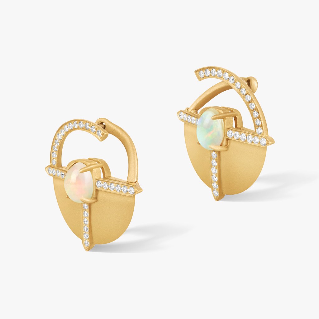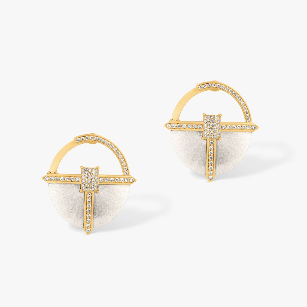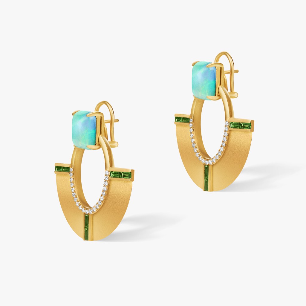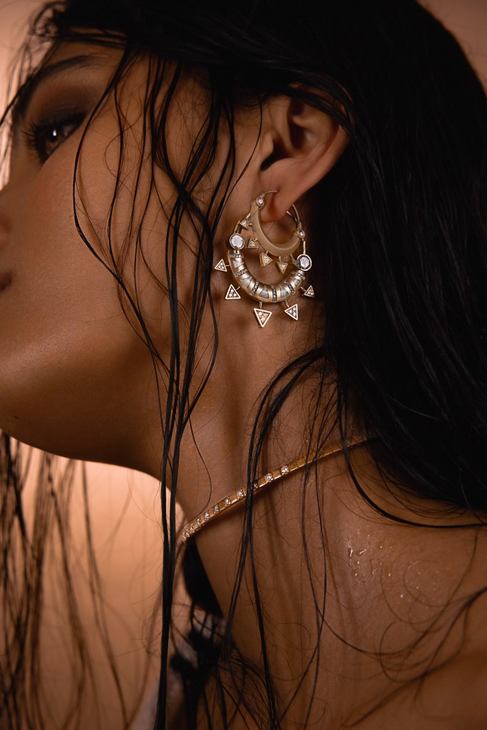 Ashaha’s essence combines traditional Berber craftsmanship, showcasing meticulously worked and brushed gold with a solid, raw, almost antique quality. The designs feature bold geometric shapes, symbolism, and vibrant primary colours, embodying an edgy, avant-garde style. Drawing inspiration from the 70s, when Berber jewellery was widely admired and worn by iconic figures, Ashaha’s aesthetic embraces contemporary modernity. It also reflects how Amazigh Berber women accumulate jewellery, incorporating this layered, abundant style into its designs, creating a unique blend of heritage and current trends.